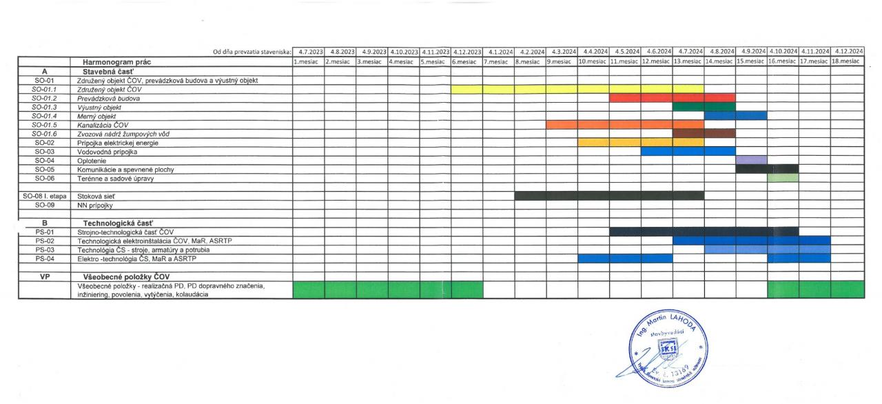 Kanalizácia a ČOV - harmonogram prác