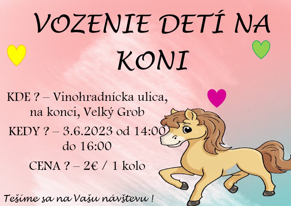 Pri príležitosti Dňa detí Vás pozývame na príjemne strávené popoludnie s koníkmi priamo vo Veľkom Grobe.