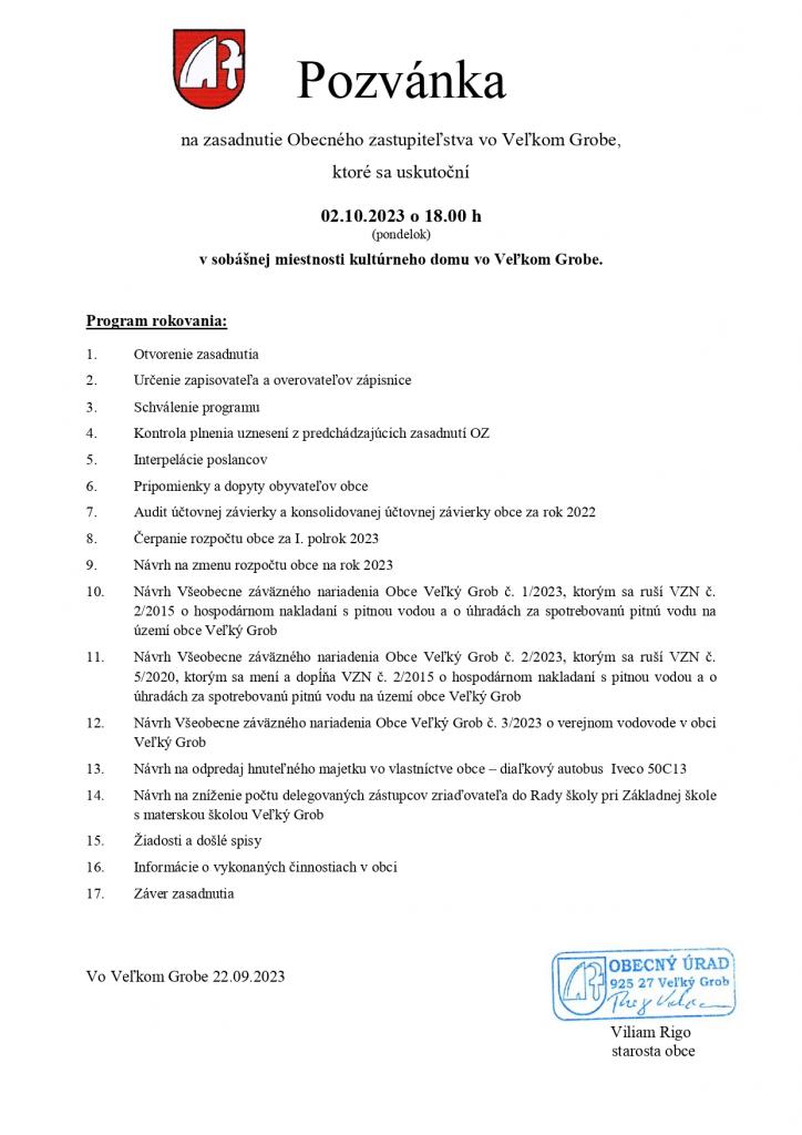 Pozvánka na zasadnutie Obecného zastupiteľstva