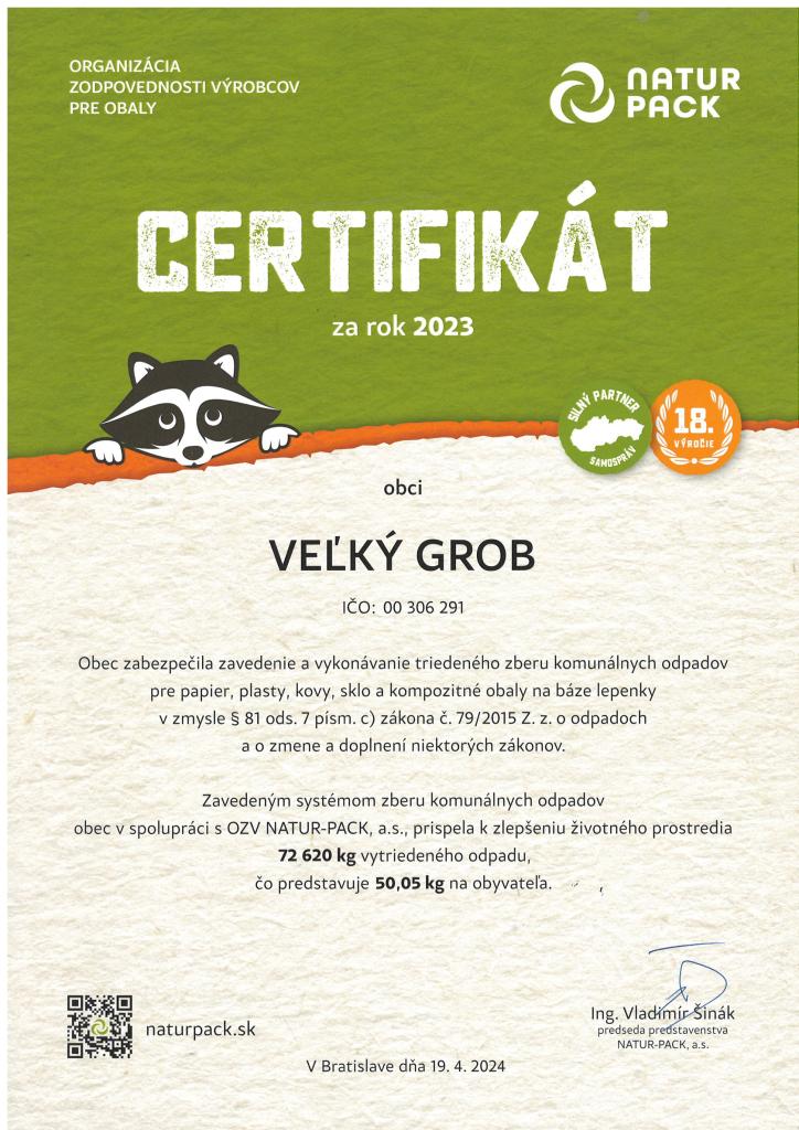 Aj v roku 2023 sa našej obci darilo zodpovedným triedením odpadov prispievať k ochrane životného prostredia.