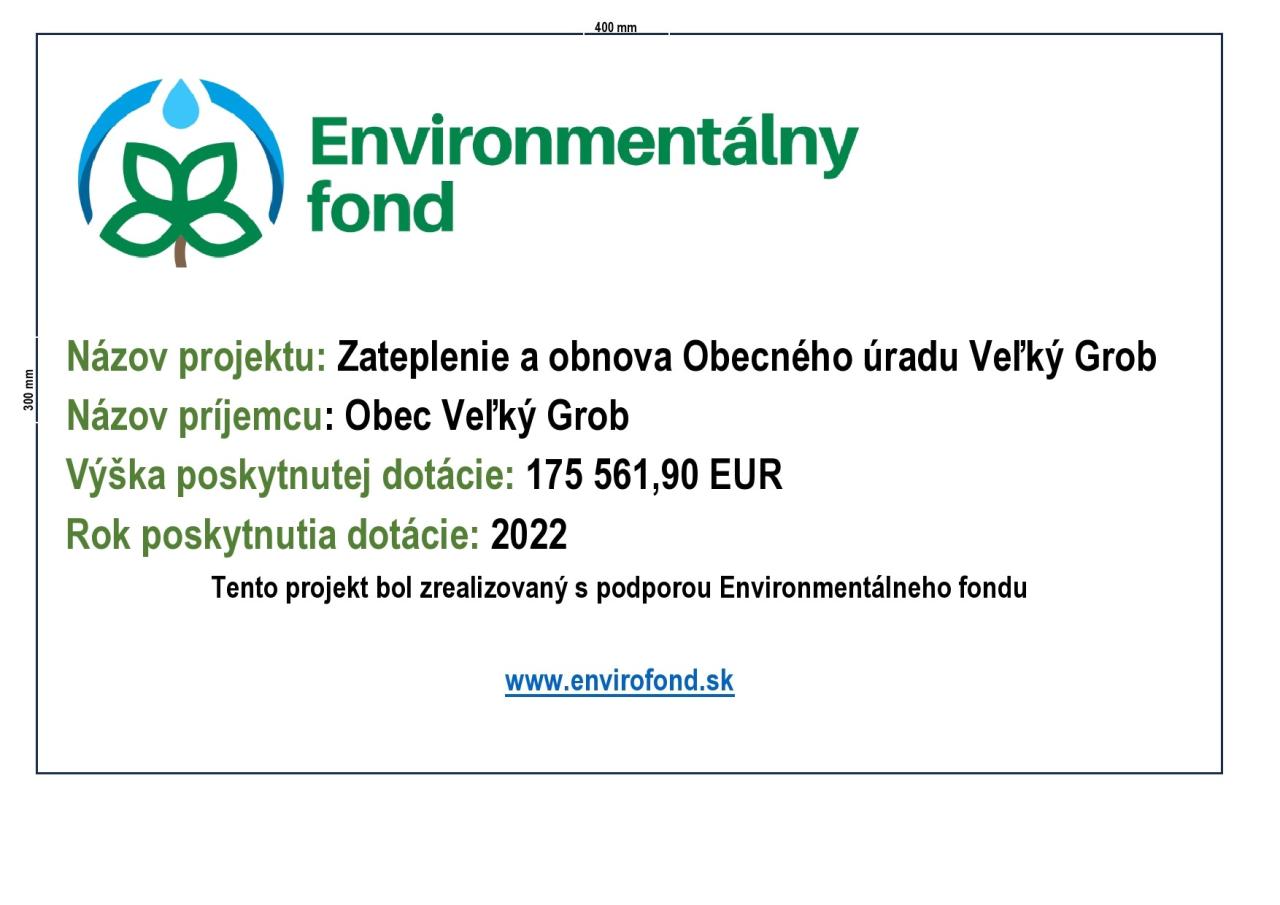 Investor: Obec Veľký Grob (projekt je spolufinancovaný Enviromentálnym fondom)